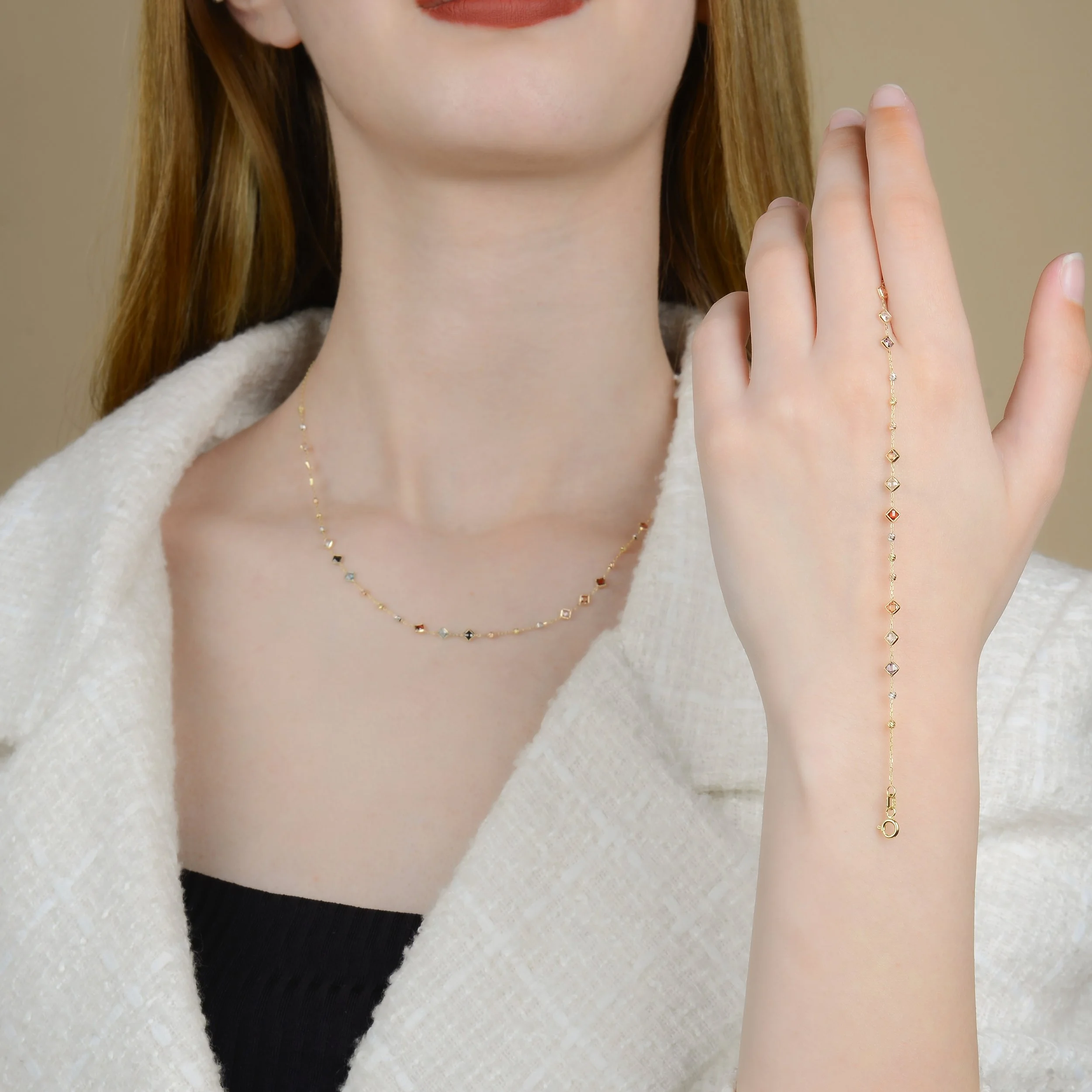 Crafted with meticulous attention to detail, the necklace features a pendant adorned with an array of colored gemstones, each representing a different facet of love.